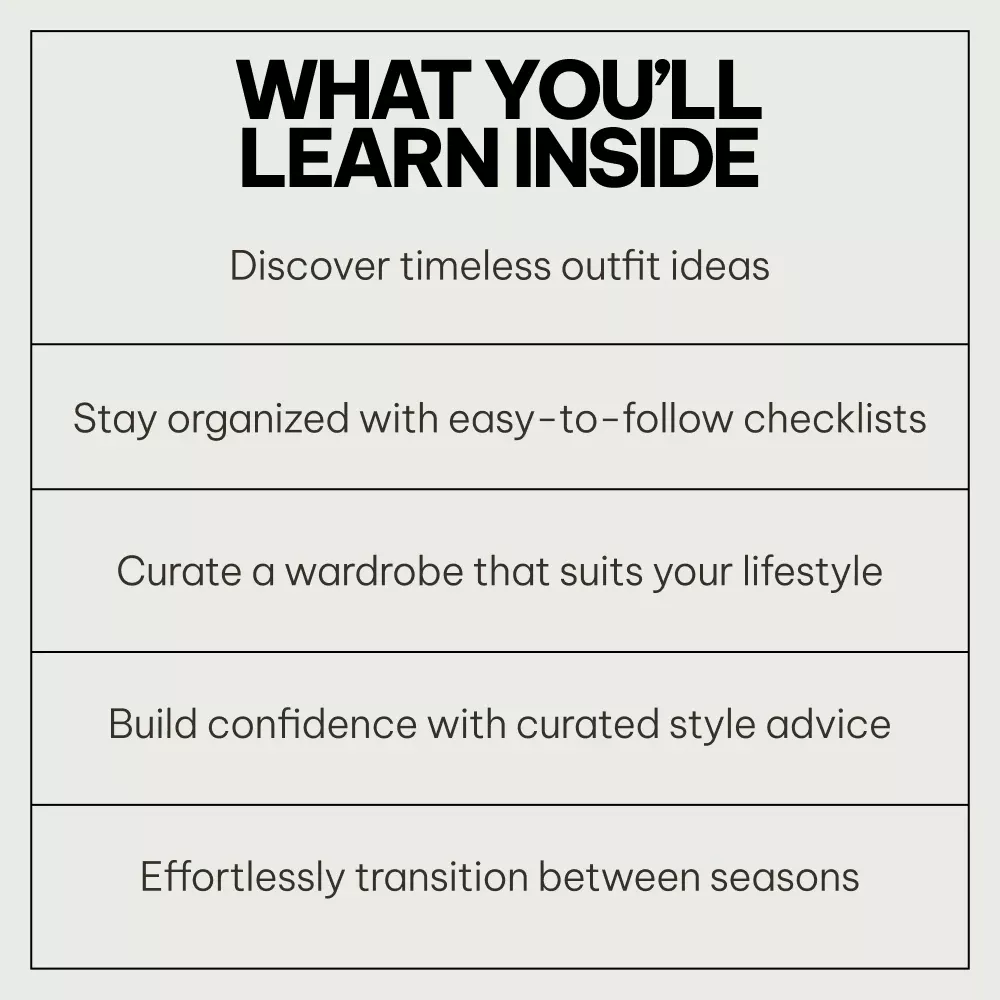 This digital bundle is perfect for anyone who wants to step up their fashion game. Whether you’re a busy professional, a stay-at-home mom, or a fashion enthusiast, these easy-to-follow guides and checklists will help you stay on top of your wardrobe year-round. You won’t have to worry about what’s in or out of style because this pack is tailored to help you look your best no matter the season. No more guesswork—just timeless style and confidence!