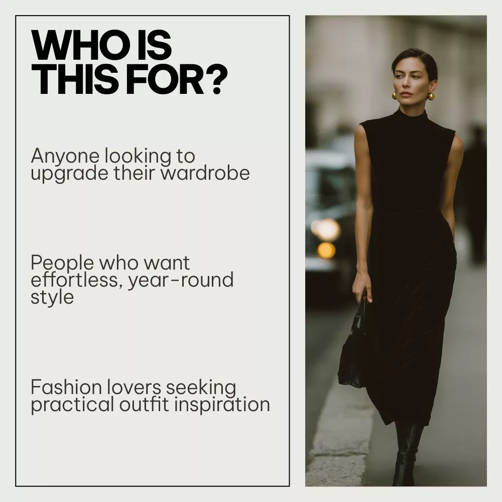 I’m really impressed with how much content is included in this bundle. The seasonal guides are especially helpful — I loved the autumn and summer outfit sections. The checklists made it easier to see what I was missing in my wardrobe. Some of the advice felt a bit classic rather than super trend‑forward, but honestly that might be better for long-term wear. Overall, it gave me structure and saved me from a few impulse purchases already!