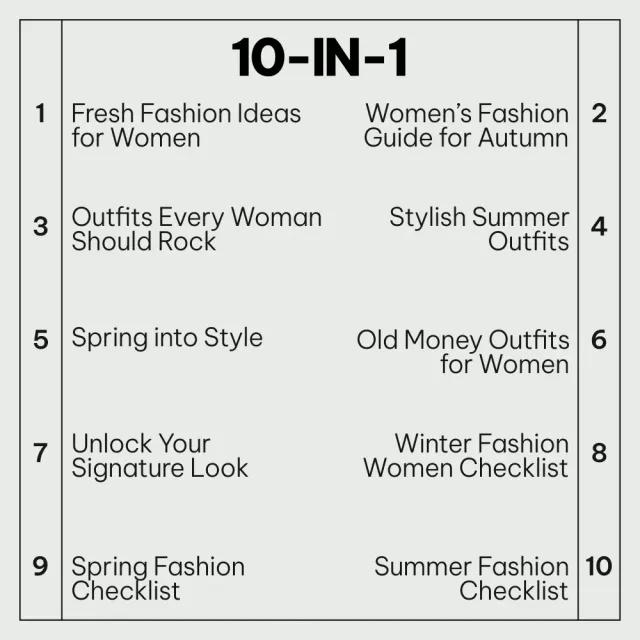 As someone who loves staying updated with latest trends, this 10-in-1 bundle is an absolute treasure trove! Each guide offers unique insights and practical advice tailored for various styles. Plus, the handy checklists ensure that you don't miss out on any essential piece while curating your perfect ensemble. Whether it's casual chic or formal elegance you're aiming for, these guides will help you nail it every time! A must-have resource indeed.