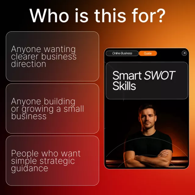 Unlike generic SWOT worksheets, Smart SWOT Skills combines practical instruction, AI-powered prompts, and real-world examples in one easy-to-use download. It teaches you not just what SWOT is, but how to confidently apply it to your business every single week.