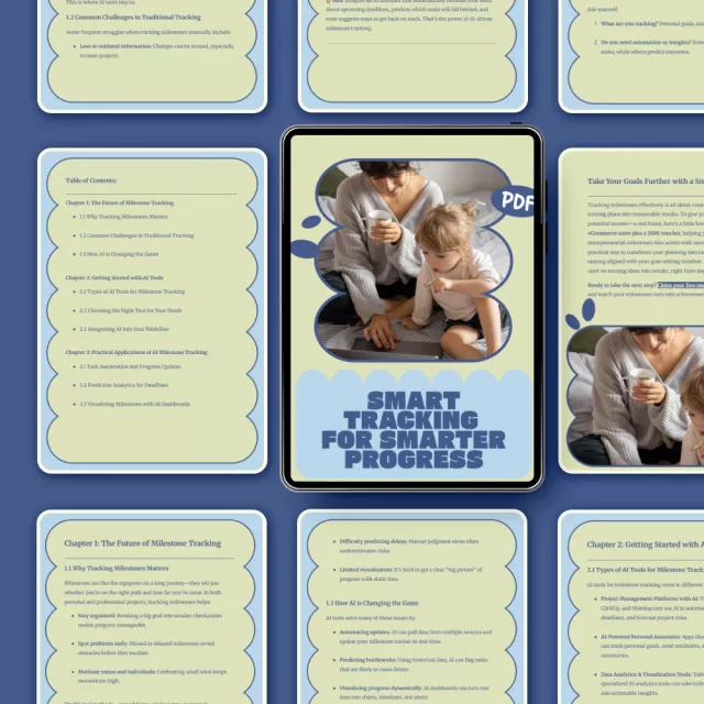 Smart Tracking for Smarter Progress is a practical, future-focused ebook designed to help you move beyond spreadsheets, guesswork, and manual updates. This digital guide shows you how to use AI intelligently to track milestones, predict outcomes, and stay on schedule without burning out. Whether you’re managing a project, working toward personal goals, or coordinating team progress, this ebook breaks down complex technology into clear, actionable steps you can apply immediately.