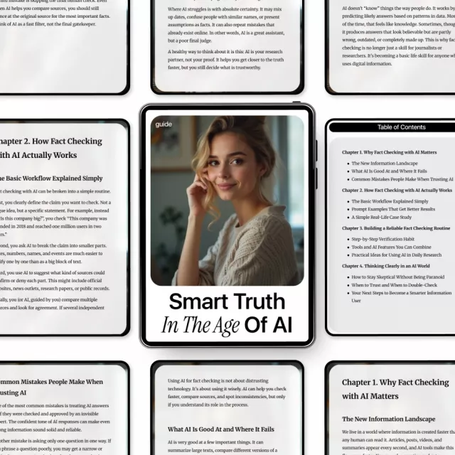 This guide is perfect for students, professionals, content creators, researchers, educators, and curious lifelong learners who use AI tools and want to use them responsibly. If you’ve ever wondered whether AI-generated information can truly be trusted, Smart Truth in the Age of AI was made for you.