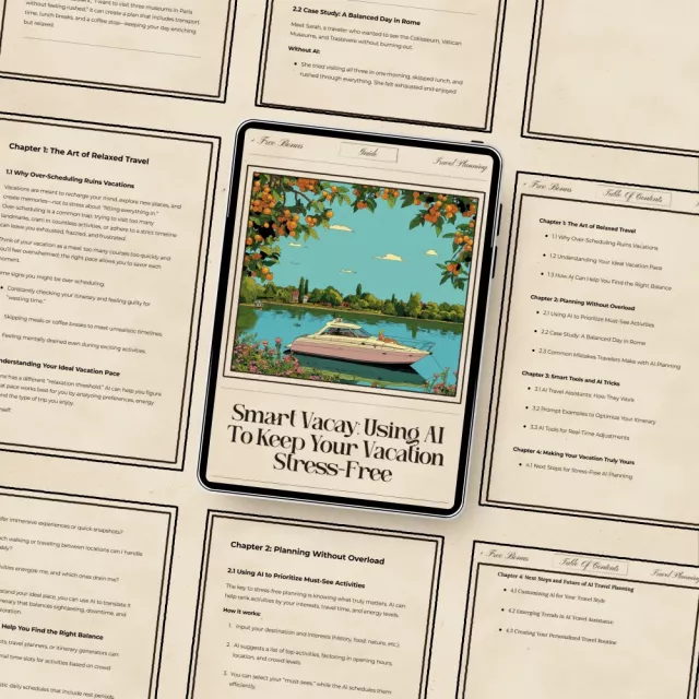Download Smart Vacay: Using AI to Keep Your Vacation Stress-Free today and start planning a vacation that feels smoother, lighter, and perfectly designed for the way you love to travel.