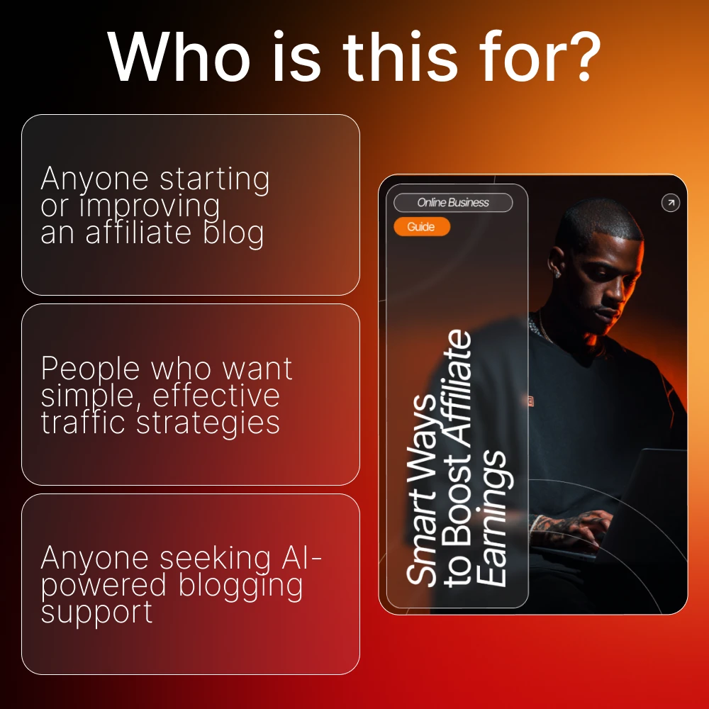 This guide is perfect for bloggers, aspiring affiliates, digital creators, side hustlers, and small business owners who want to transform their blog into a reliable income stream. If you’re searching for a resource that explains how to use a blog for affiliate marketing without fluff or filler, you’ll find this guide refreshingly practical.