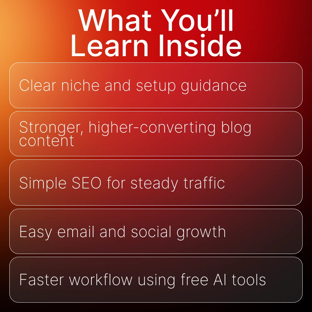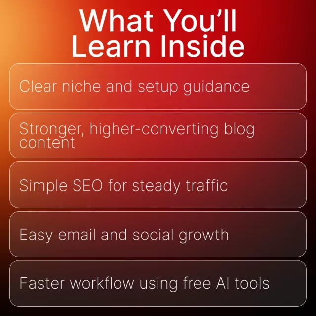 Unlike generic tutorials, this guide blends foundational blogging strategy with modern AI tools, giving you both timeless and forward-thinking methods. It’s structured, actionable, and written to help you see results—not just absorb information. You get a full roadmap: from setup, to content creation, to traffic growth, to AI-powered optimization.
