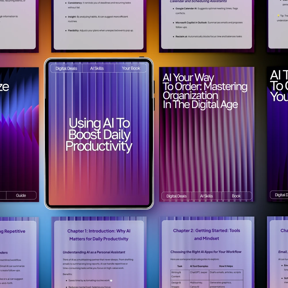 This toolkit includes easy-to-follow guides, practical eBooks, and actionable checklists that walk you through real-life use cases of AI. You’ll discover step-by-step workflows, ready-to-use prompts, and simple systems that show how to use ai for daily productivity without technical jargon or overwhelm. Each resource is designed to stand alone while also working seamlessly together as a complete system.