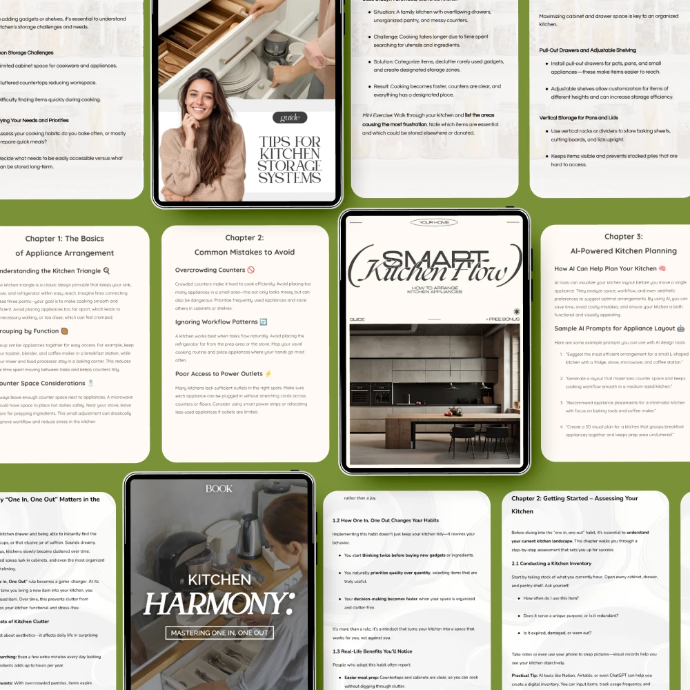 Imagine opening your cabinets and instantly knowing where everything belongs. The Smart Workflow Kit for Your Organized Kitchen is a thoughtfully designed 5-in-1 digital bundle that helps you simplify, streamline, and truly enjoy your kitchen space. Whether you’re overwhelmed by clutter, short on storage, or simply tired of inefficient layouts, this kit guides you step by step toward a calmer, more functional kitchen that fits your real life.