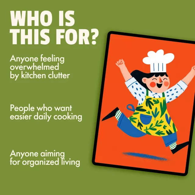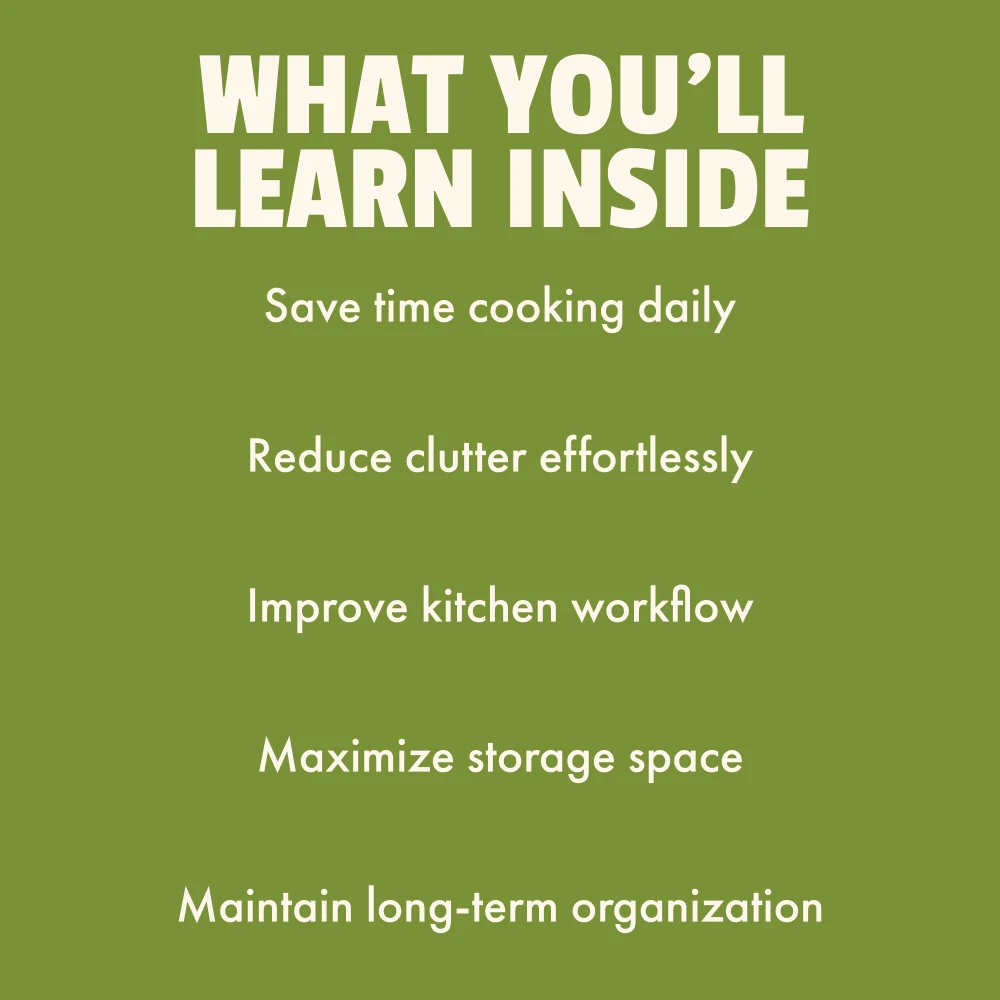 This kit really helped me streamline my kitchen. The tips on storage and organizing have been so helpful! I feel like I’m cooking in a completely new space now. It's an absolute must-have for anyone who loves an efficient, tidy kitchen!