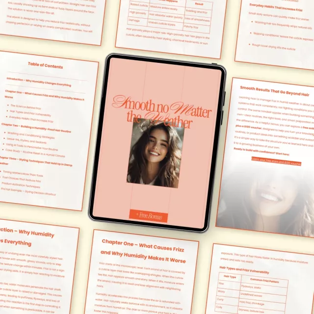 Humidity can turn even the best hair days into a frizzy mess. Smooth No Matter the Weather is a practical, easy-to-follow ebook designed to help you understand what’s really happening to your hair and exactly how to fix it. Whether you live in a humid climate, travel often, or struggle with seasonal frizz, this guide shows you how to reduce frizz in humid weather using smarter routines, better styling techniques, and simple adjustments that actually work.