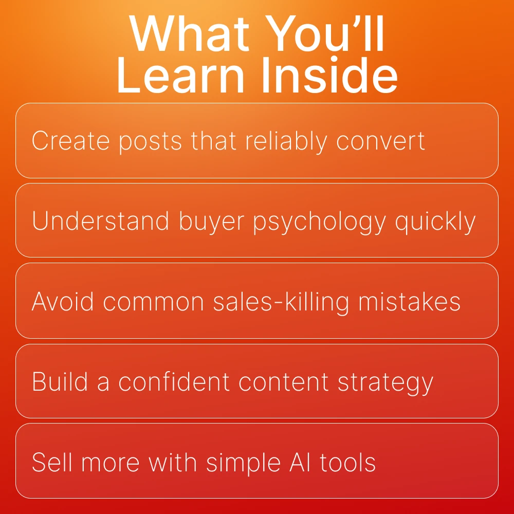 Unlike generic social media guides, this resource combines sales psychology, simple posting frameworks, and AI-driven tools to help you grow faster with less effort. Every section is actionable, clear, and designed to help you sell in a way that feels natural and authentic.