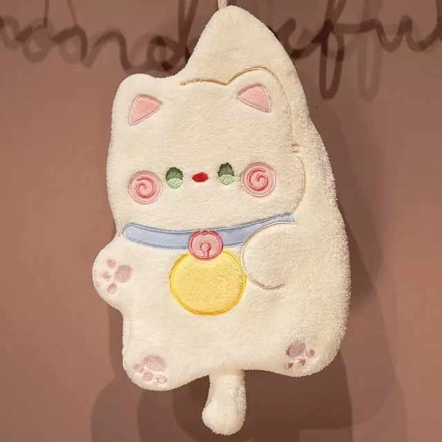 Soft Cute Quick Drying Coral Velvet Hand Towel – Cartoon Cat Design