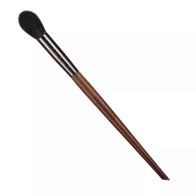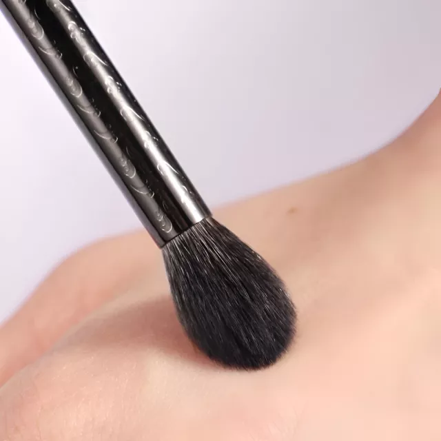 The brush is crafted with luxurious goat hair bristles that are gentle on your skin, perfect for even the most sensitive complexions. Its sturdy wooden handle offers a comfortable grip, giving you precision control during application. The tapered shape glides effortlessly over cheekbones, brow bones, and jawlines, making it ideal for both powder and highlighter products.