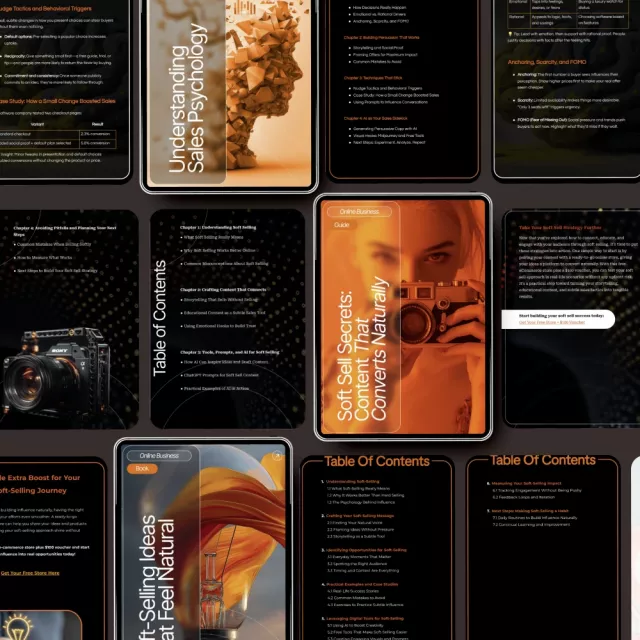 Whether you’re new to soft-selling or looking to fine-tune your existing approach, this bundle provides real-world value. By learning the art of soft-selling ideas that feel natural, you can create deeper connections with your customers, increase your sales without the hard sell, and nurture long-term relationships. The insights in Understanding Sales Psychology will guide you in tapping into the psychology behind customer decisions, allowing you to craft irresistible offers. Plus, with Soft Sell Secrets: Content That Converts Naturally, you’ll have the knowledge to write content that naturally leads to sales, without feeling like you’re pushing your product.