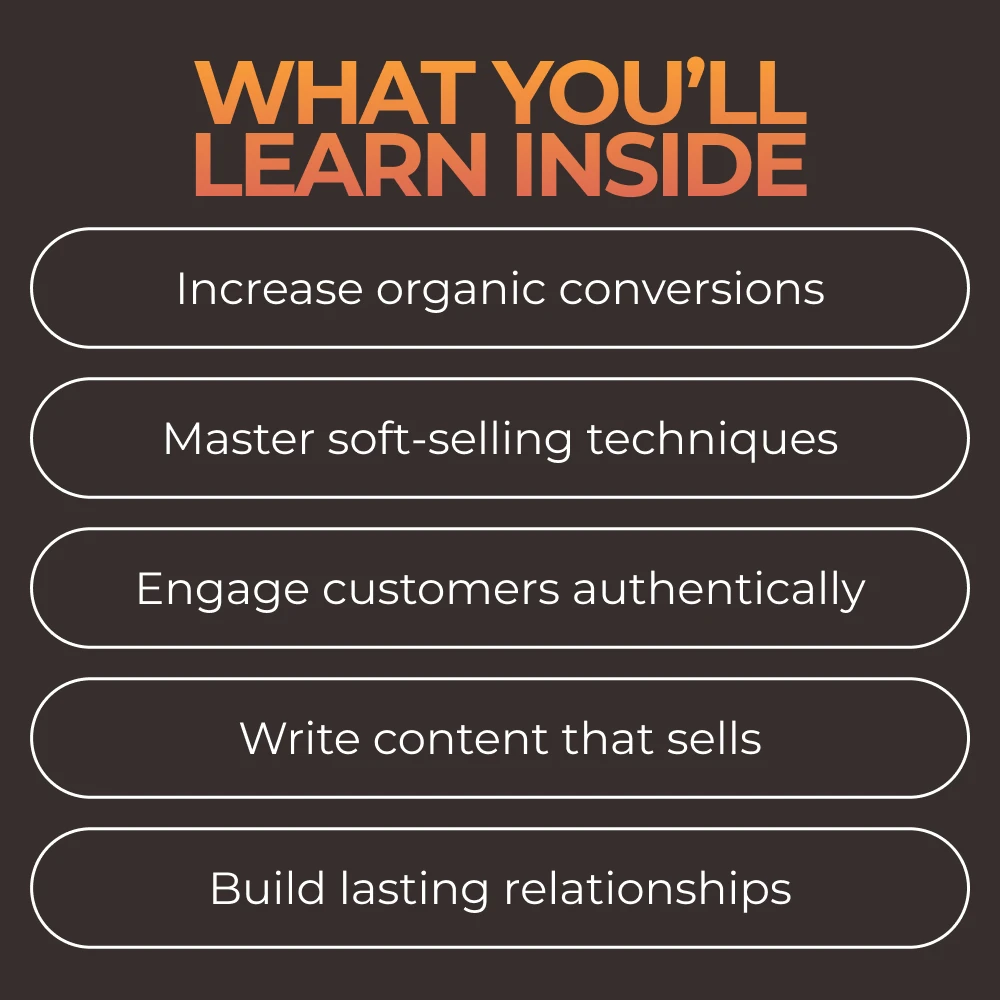 • Learn how to use soft-selling ideas that feel natural and resonate deeply with your target audience.
