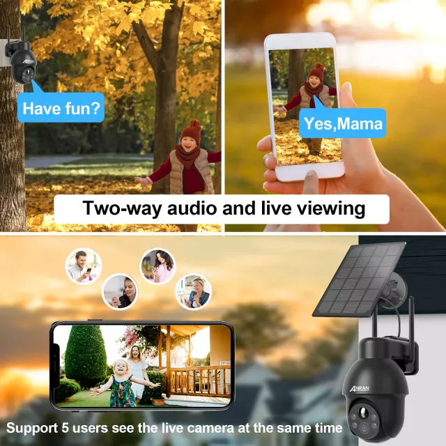 Solar Powered 5MP Outdoor WiFi Security Camera with Color Night Vision & Audio