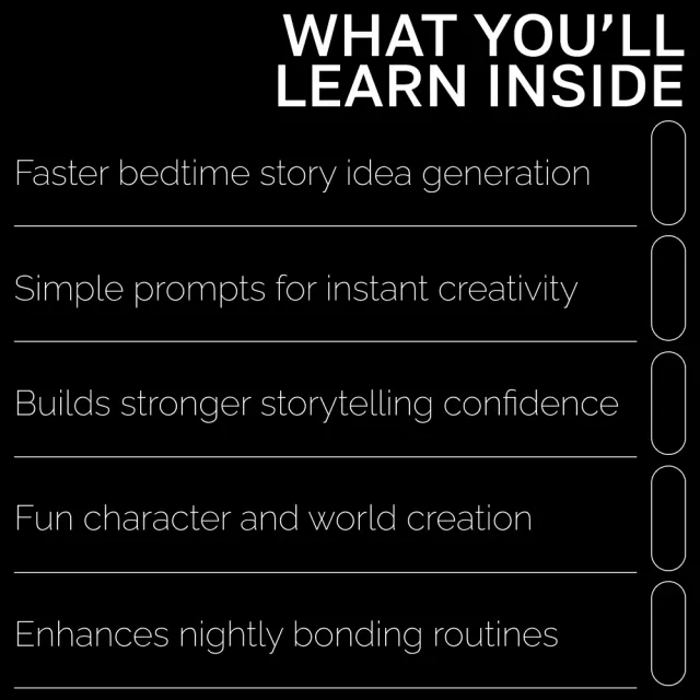 Unlike generic story idea lists, this guide shows you how to think creatively with AI, giving you practical prompts, real examples, and confidence-building techniques. It focuses on collaboration with AI while keeping your unique voice at the heart of every bedtime tale.