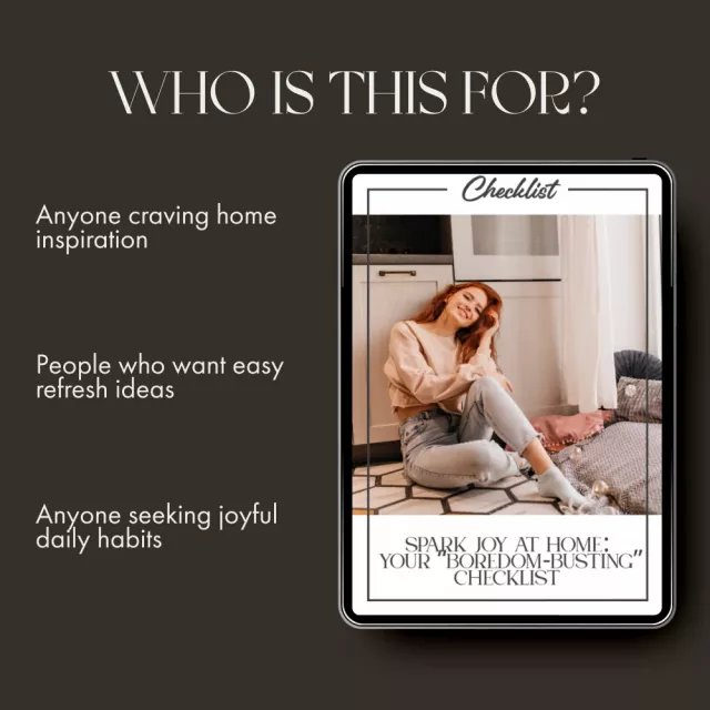 Don’t wait for motivation—create it! Download Spark Joy at Home: Your “Boredom-Busting” Checklist today and fall in love with your space all over again. Perfect for anyone wondering what to do when home feels boring—this is your invitation to rediscover joy, creativity, and calm right where you are.