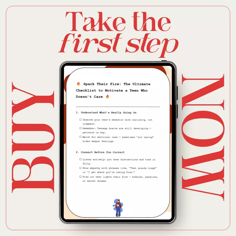 Unlike generic parenting advice, Spark Their Fire: The Ultimate Checklist to Motivate a Teen Who Doesn’t Care focuses on connection first, motivation second. It respects teenage development, avoids shame-based tactics, and empowers both you and your teen with small, meaningful steps that lead to lasting change.