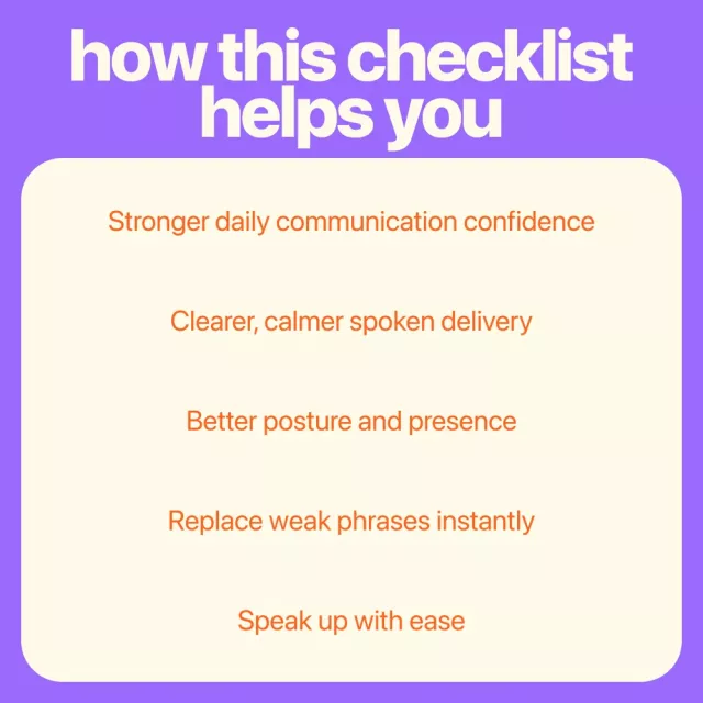 This checklist is perfect for professionals, coaches, students, content creators, entrepreneurs, and anyone who wants to speak with more authority and authenticity. Whether you struggle with public speaking, workplace interactions, or everyday conversations, this tool supports you at every level.