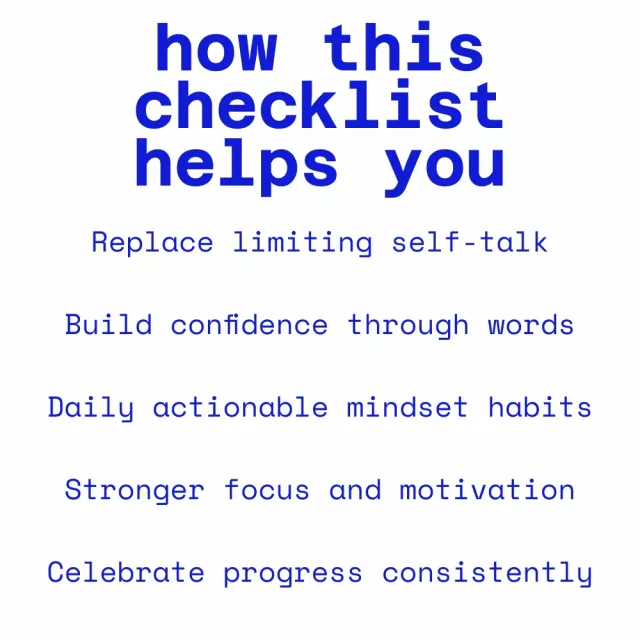 This checklist is designed for real life. You do not need hours of time or complex mindset training. In just a few intentional moments each day, you learn how to identify unhelpful language and replace it with powerful words for success that drive confidence and action. Unlike long eBooks or generic affirmations, this checklist is practical, repeatable, and easy to use daily.