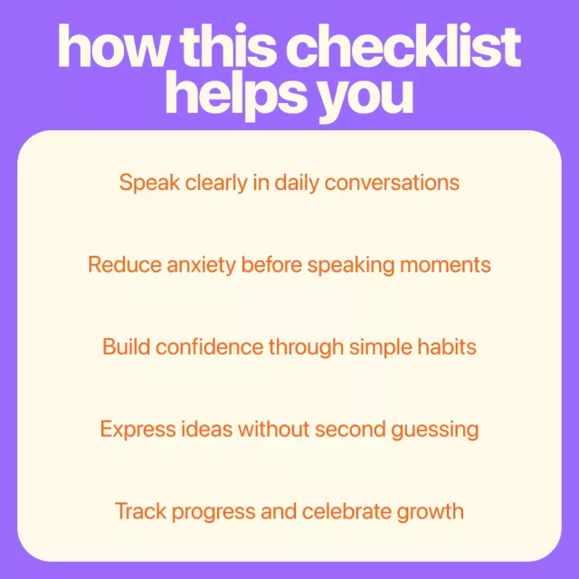 This checklist is ideal for professionals, students, creatives, introverts, and anyone who wants to speak with more clarity and confidence. It’s especially helpful if you feel anxious in conversations, struggle to express your thoughts, or want to grow your communication skills in a supportive, pressure-free way.