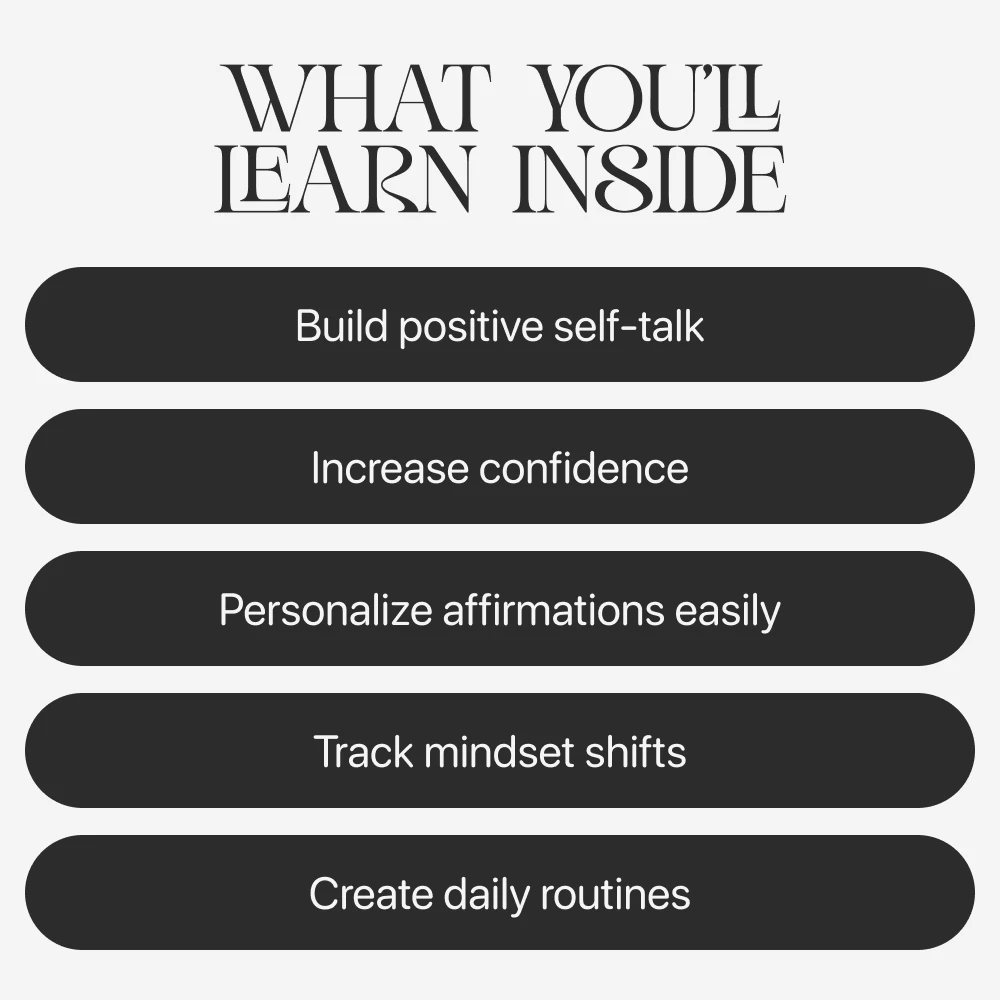 • Learn to craft affirmations tailored specifically to your goals and mindset.