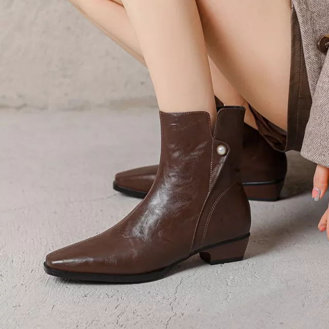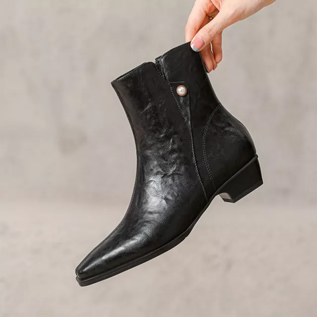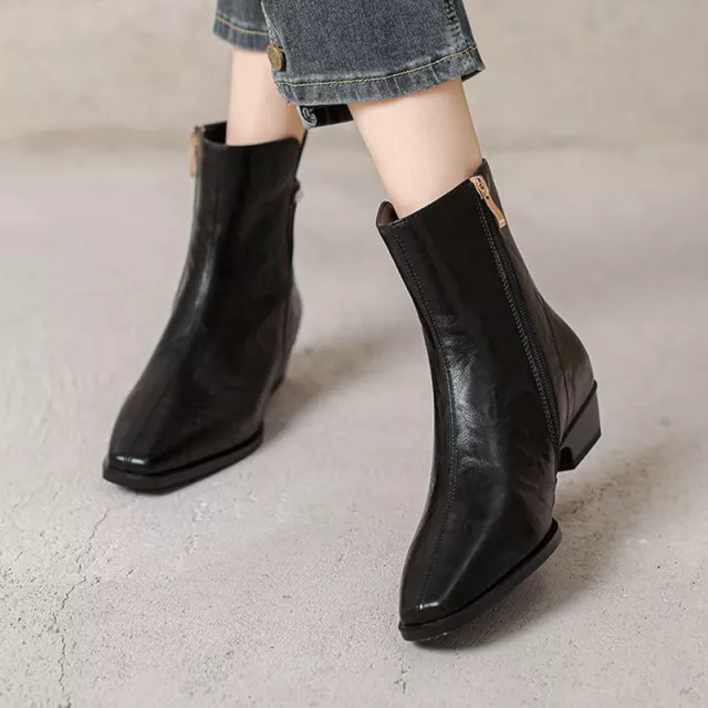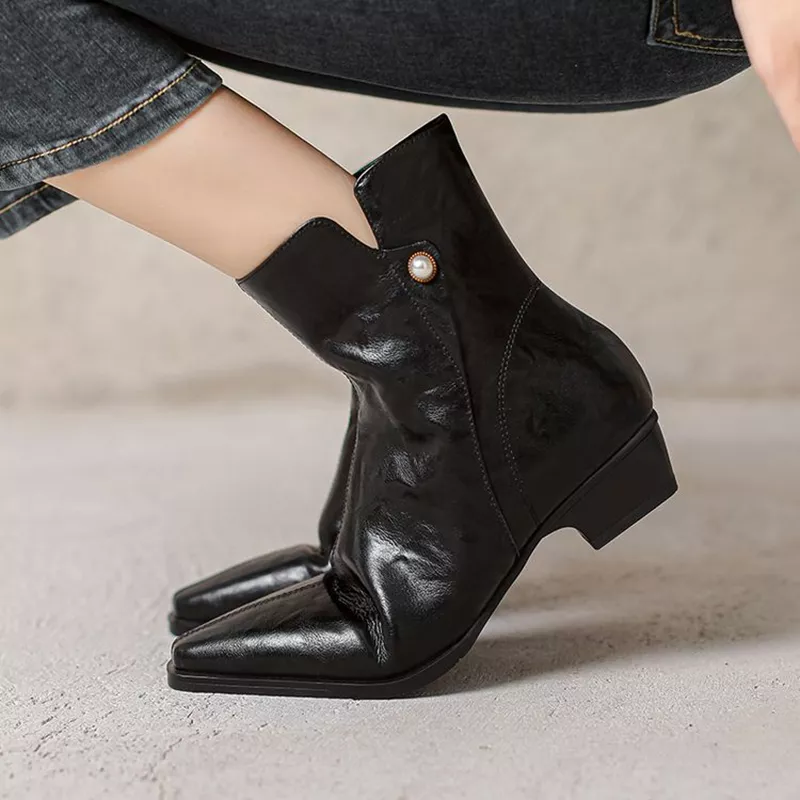 What makes these boots truly special is their blend of simplicity and elegance. The spliced design, smooth leather texture, and pearl zipper create a look that feels both fresh and timeless. They offer the basic features every woman needs in an everyday boot—comfort, durability, and versatility—yet bring a unique touch that sets them apart from ordinary styles.