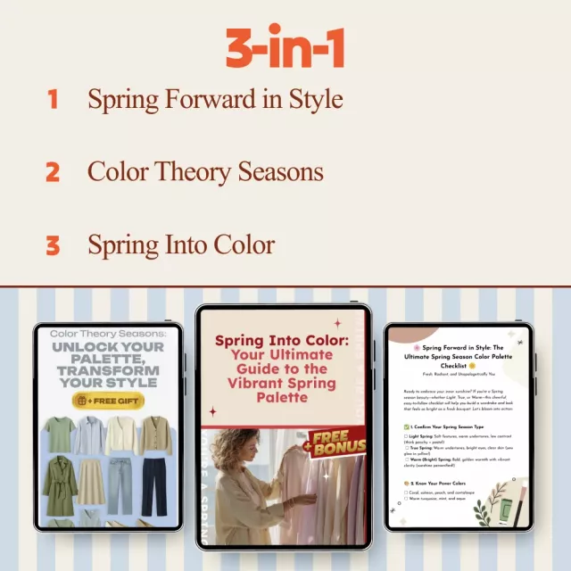 Refresh your wardrobe, your confidence, and your style decisions with the Spring Color Analysis Bundle—a beautifully curated 3-in-1 digital collection designed to help you master spring seasonal color analysis with clarity and ease. If you have ever felt unsure about which colors truly flatter you, this bundle removes the guesswork and gives you a clear, actionable roadmap to dressing in harmony with your natural coloring. Created for everyday wear, special occasions, and intentional shopping, these guides help you step into spring with confidence and consistency.