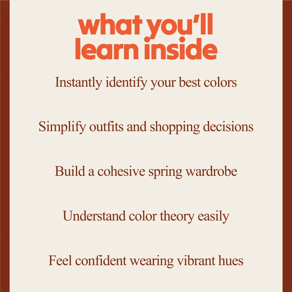 Each resource works together to support a complete and easy-to-follow spring seasonal color analysis experience, whether you are new to color theory or refining your personal style.