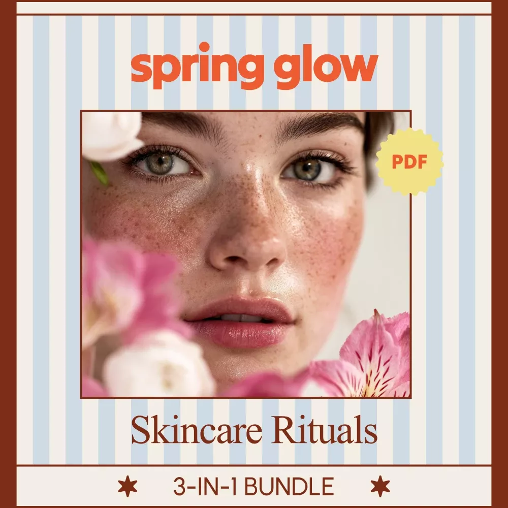 Step into the season of renewal with the Spring Glow Skincare Rituals Pack, a thoughtfully designed 3-in-1 digital bundle that helps you refresh, reset, and glow with confidence. This collection of easy-to-use guides and checklists takes the guesswork out of building a spring beauty routine that actually works for your skin. Whether you’re transitioning from winter dryness or simply craving a more intentional approach to skincare, this pack is your go-to glow companion.