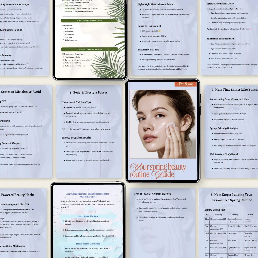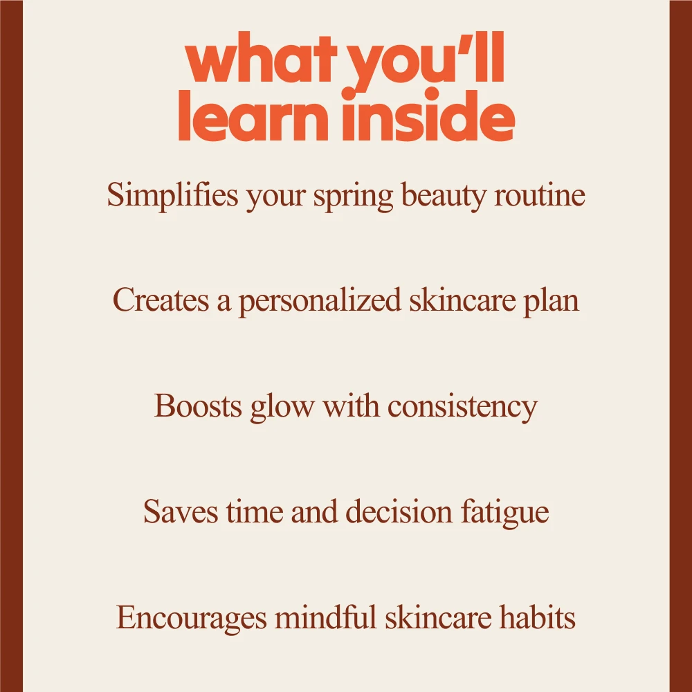Unlike generic skincare resources, the Spring Glow Skincare Rituals Pack focuses on personalization and seasonal care. Instead of telling you what products to buy, it helps you understand how to build a routine that fits your unique needs while aligning with the rhythm of spring.