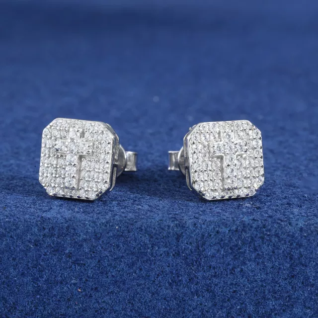 Square Cross Moissanite Stud Earrings 925 Sterling Silver Gold Plated Jewelry