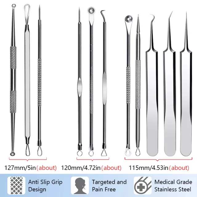 Clear, healthy skin is just a few steps away. Add this stainless steel blackhead and pimple removal tool set to your skincare routine today and enjoy the confidence of a fresh, blemish-free face.