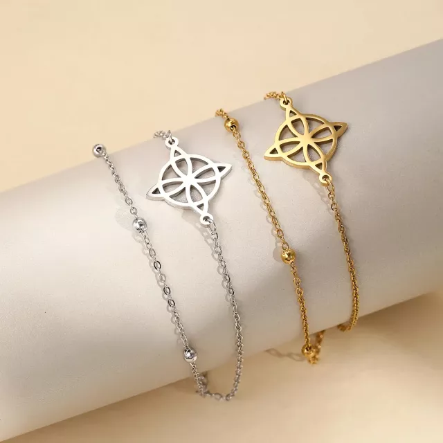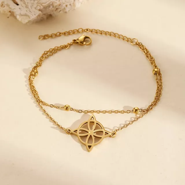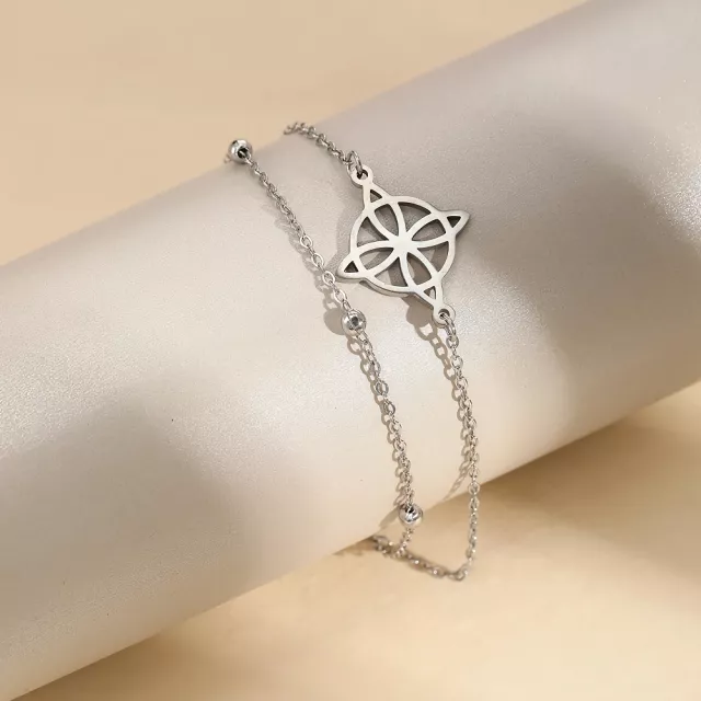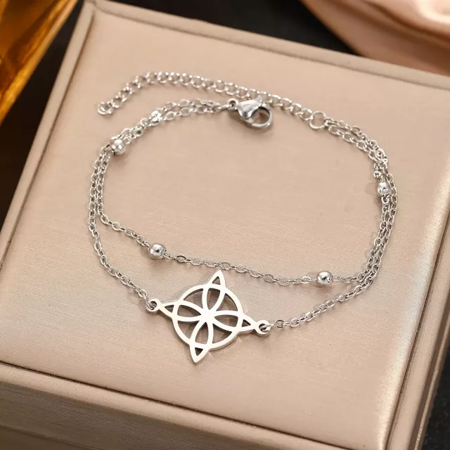 Stainless Steel Celtic Knot Cross Double Layer Bracelet for Women