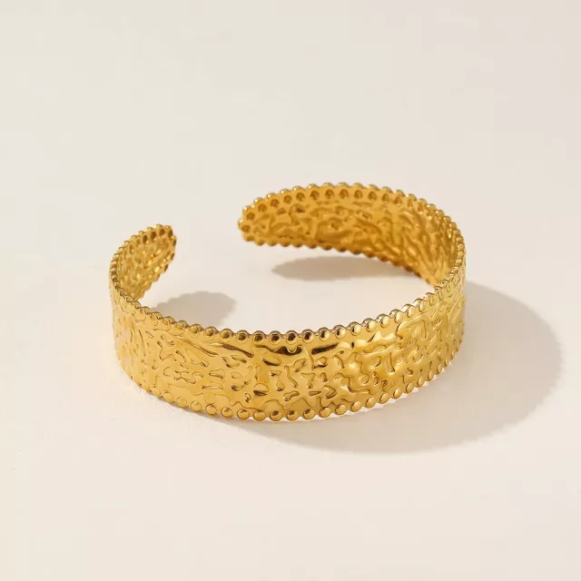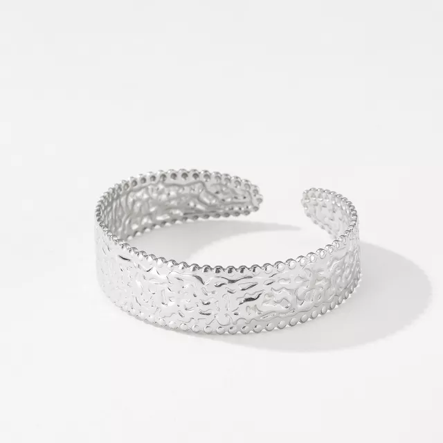 Stainless Steel Embossed Open Cuff Bracelet