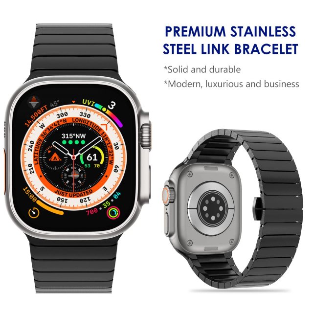 Enhance the look and feel of your Apple Watch with this sleek, durable, and stylish stainless steel strap. Designed to fit a range of Apple Watch models from Series 1 to Series 10, as well as the latest Apple Watch Ultra 2, this band offers the perfect balance of comfort, strength, and sophistication. Whether you’re dressing up for a special occasion or need a band that can withstand daily wear, this stainless steel band is the ideal accessory for your Apple Watch.