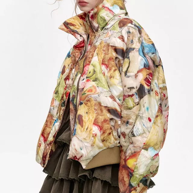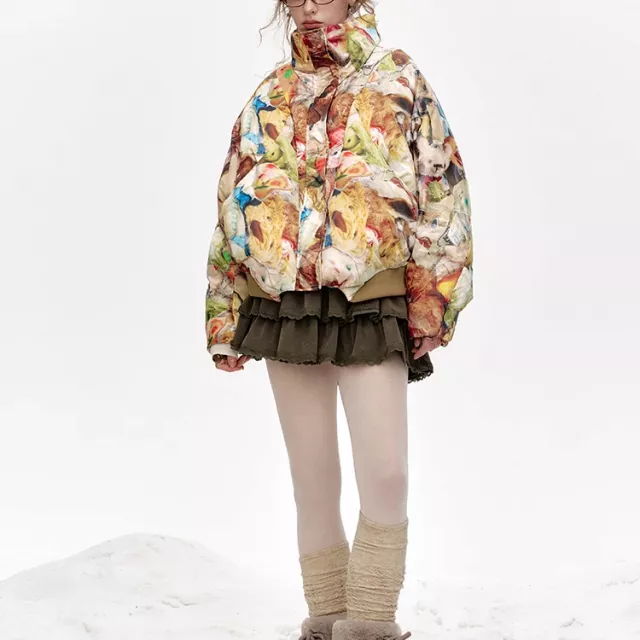 This down jacket is the ultimate combination of fashion and function. It is designed to keep you warm, comfortable, and looking fabulous throughout the winter season. Its light weight and regular length make it easy to layer over any outfit, whether you’re wearing a sweater or a hoodie. The cartoon print makes it stand out from other winter jackets, offering a fresh take on the classic puffer style.