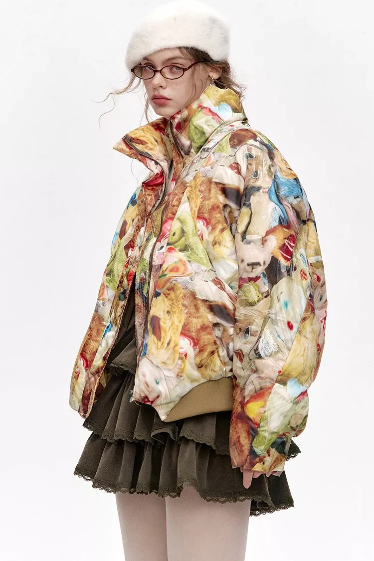 Embrace the cold weather in style with this Stand Collar Cartoon Print Short Down Jacket, the perfect addition to your autumn and winter wardrobe. Designed for the modern woman, this jacket combines warmth, comfort, and trendy flair, ensuring you stay cozy without compromising on style. Whether you’re heading out for a casual day out or a chilly evening stroll, this jacket is your go-to piece for the season.