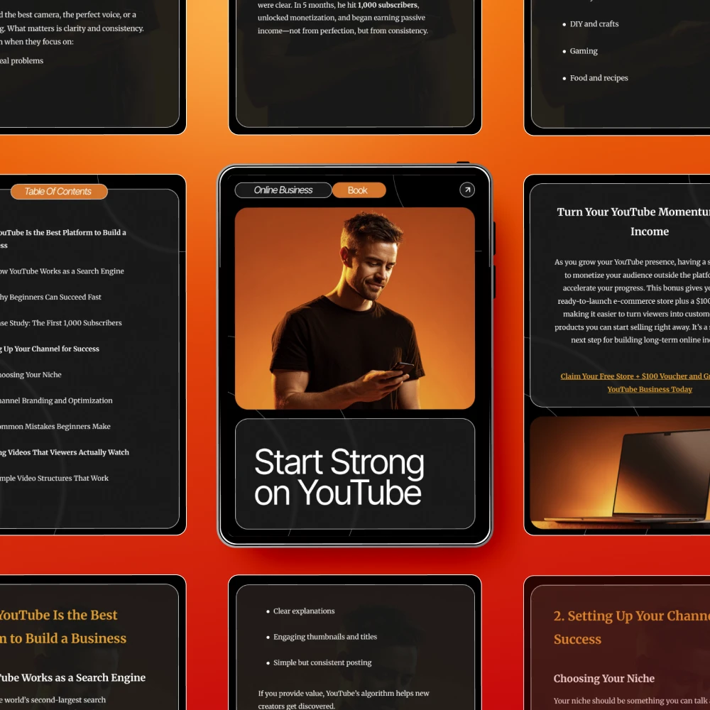 Turn your ideas into income with Start Strong on YouTube — a complete beginner-friendly eBook designed to help you create, grow, and profit from your YouTube channel. If you’ve ever dreamed of turning your videos into a real business but didn’t know where to start, this guide gives you the roadmap. Simple, clear, and packed with actionable steps, it’s the perfect resource for anyone ready to learn youtube online business basics for beginners and start earning faster than you think.