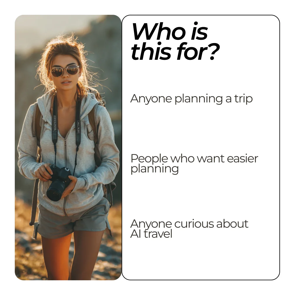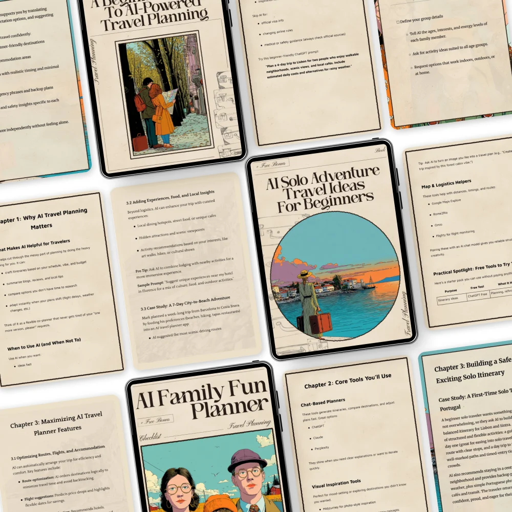 This bundle is perfect for anyone looking for an ai travel planner for beginners. It’s ideal if you feel overwhelmed by trip planning, curious about using AI but unsure where to start, or want simple systems that actually work. Whether you’re a solo traveler, a parent planning family vacations, or someone who just wants smarter travel solutions, this pack meets you where you are.