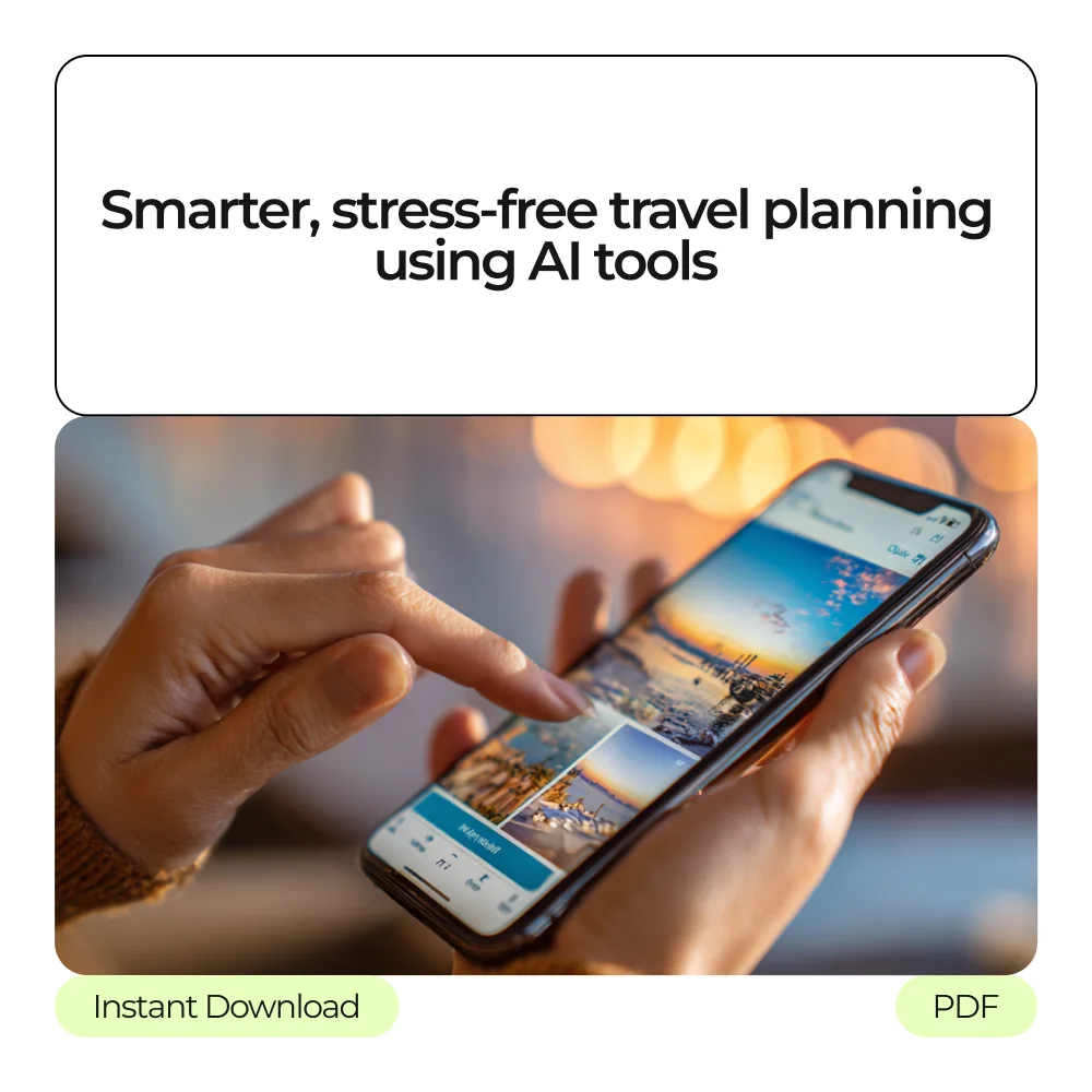Download the Start Traveling Smarter with AI Pack and turn travel planning into something simple and enjoyable. If you’re ready to save time, reduce stress, and finally feel confident using AI for trips, this ai travel planner for beginners bundle is your perfect starting point. Add it to your cart and start planning smarter today.