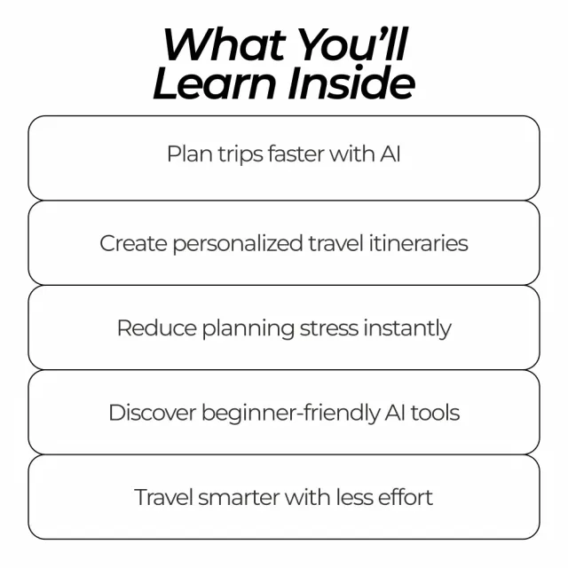 Unlike generic travel guides, this bundle focuses on real-world, beginner-friendly AI use. Everything is explained in plain language, with practical examples you can apply immediately. No complicated tech talk, no fluff—just clear tools designed to make travel easier, faster, and more enjoyable.