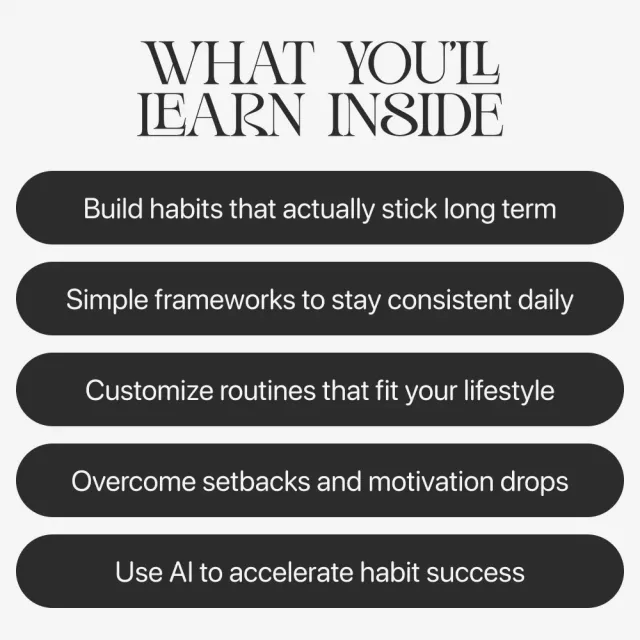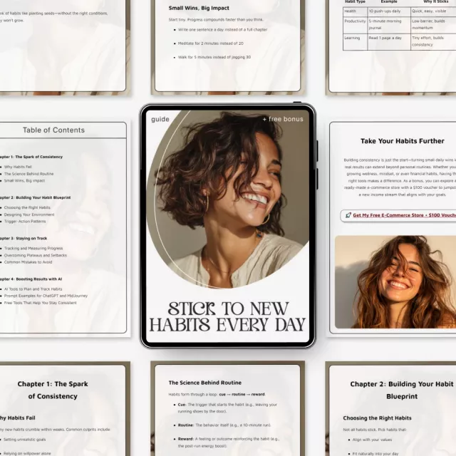 Unlike generic habit trackers or surface-level eBooks, this guide combines science-backed methods with modern AI tools to create a complete, future-ready habit system. You don’t just read about consistency — you get templates, prompts, and actionable systems to actually apply how to stay consistent with new habits in your real life. It’s not motivational talk. It’s an implementation guide.