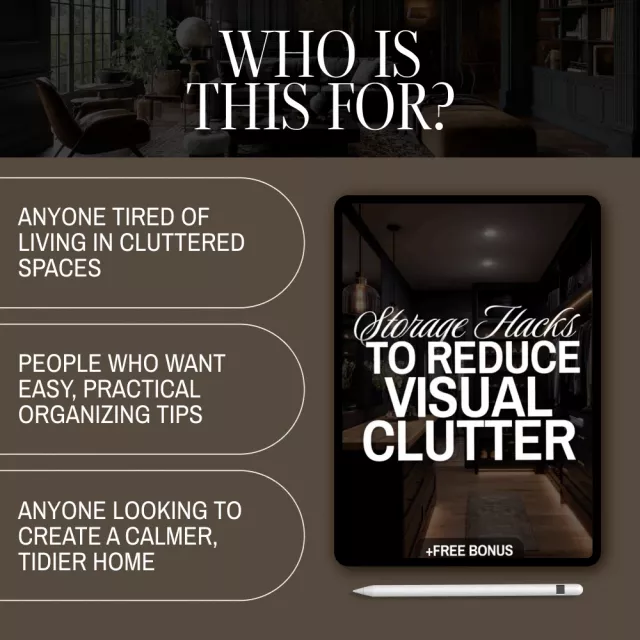 Take the first step toward a cleaner, calmer home. Download your copy of Storage Hacks to Reduce Visual Clutter today and start organizing with confidence. Your clutter-free lifestyle begins here!
