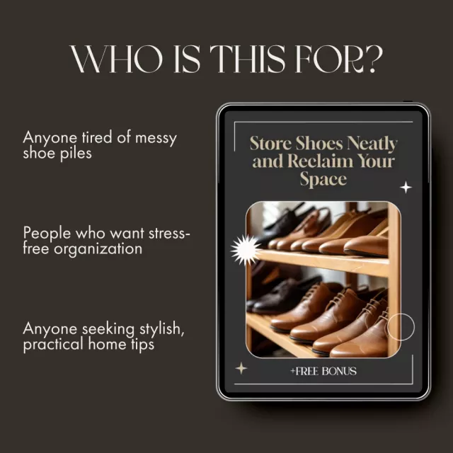 Say goodbye to tripping over shoes and wasting time searching for matching pairs. Store Shoes Neatly and Reclaim Your Space is your ultimate digital guide to mastering shoe organization once and for all. Designed for busy homeowners, renters, and style lovers, this eBook reveals the best way to store shoes neatly—no matter your space size, lifestyle, or budget. It’s time to turn chaos into order and make your entryway, closet, or mudroom a place of beauty and ease.