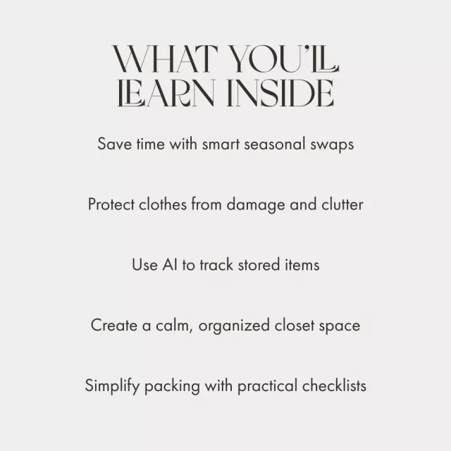 Say goodbye to clutter and confusion with Storing Out-of-Season Clothing — your ultimate digital guide on how to store out of season clothing efficiently, beautifully, and mindfully. This instantly downloadable resource walks you step-by-step through the art of wardrobe rotation, helping you create a calm, organized, and functional closet space all year long. Whether you’re downsizing, embracing minimalism, or simply tired of overstuffed drawers, this guide helps you store your clothes with confidence and care.