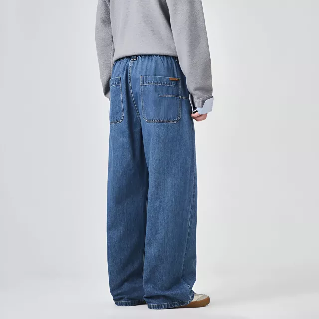 What sets these jeans apart is the balance between structure and freedom. The straight wide-leg cut gives you a trending silhouette seen in modern Korean fashion, while the half-elastic waist adds functional comfort you won’t get from standard denim. The midweight fabric ensures durability without feeling heavy, making them a dependable staple year-round.