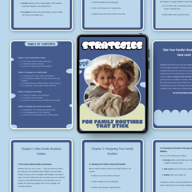 Creating daily routines shouldn’t feel like a constant battle. Strategies for Family Routines That Stick is a practical, easy-to-follow digital guide designed to help families create structure without stress. Whether mornings feel rushed, evenings feel chaotic, or consistency feels impossible, this guide walks you step by step through how to set family routines that stick in real life. Instead of rigid schedules, you’ll learn flexible systems that grow with your family and support both kids and parents.