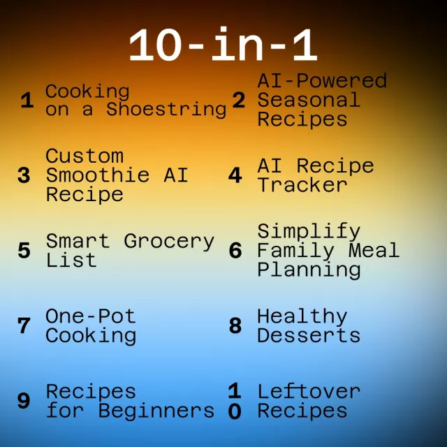 This toolkit has truly revolutionized the way I approach meal planning. I used to feel overwhelmed every week trying to figure out what to cook, especially with a busy schedule and a family to feed. But now, with just a few clicks, I’ve got an entire meal plan, grocery list, and even ideas for using up leftovers—all in minutes. The AI-powered recipes are spot-on, offering a great mix of healthy, seasonal options that keep things fresh and exciting. The smart grocery list makes shopping a breeze, and I never forget anything anymore. Plus, the budget-friendly meal ideas have been a game-changer. I can eat well without blowing my budget, and that’s a huge relief. Another thing I love is the creative leftover meal ideas. I used to throw away so much food, but now, with a little guidance from the AI, I can turn what would’ve been wasted into delicious new meals. It’s also made it way easier to prepare family meals without cooking separate dishes for picky eaters. Everyone gets something they enjoy, and I don’t have to stress in the kitchen. The toolkit has really simplified my life and made meal planning something I actually look forward to now. Highly recommend!