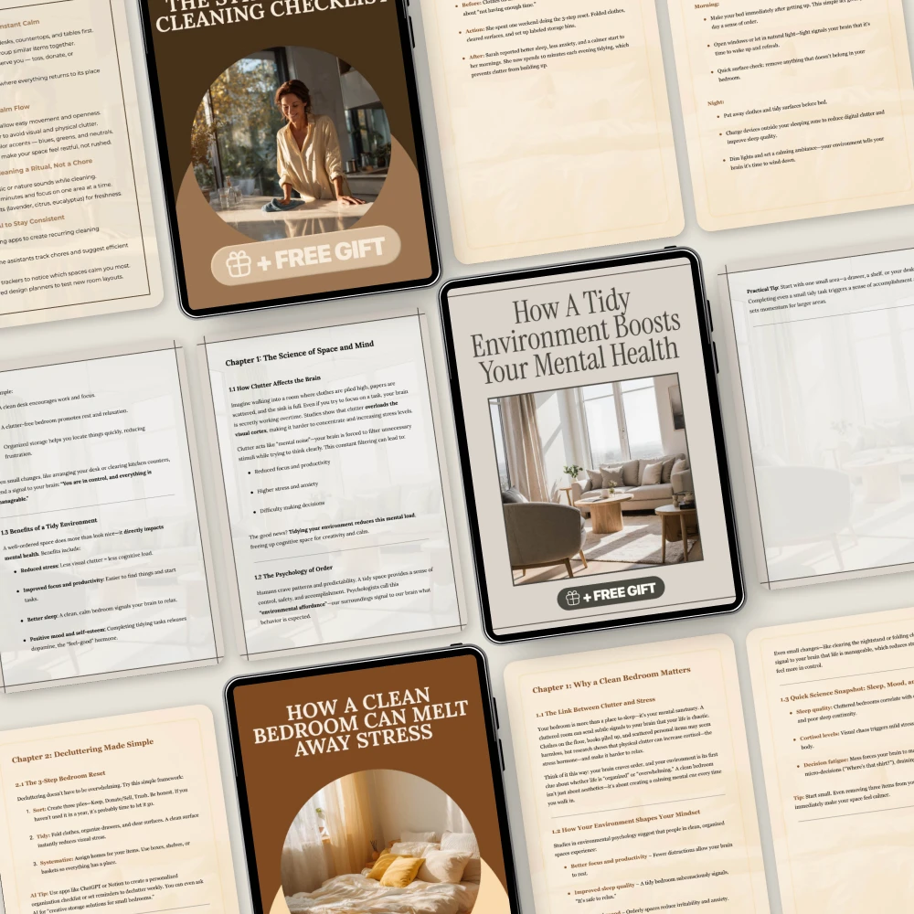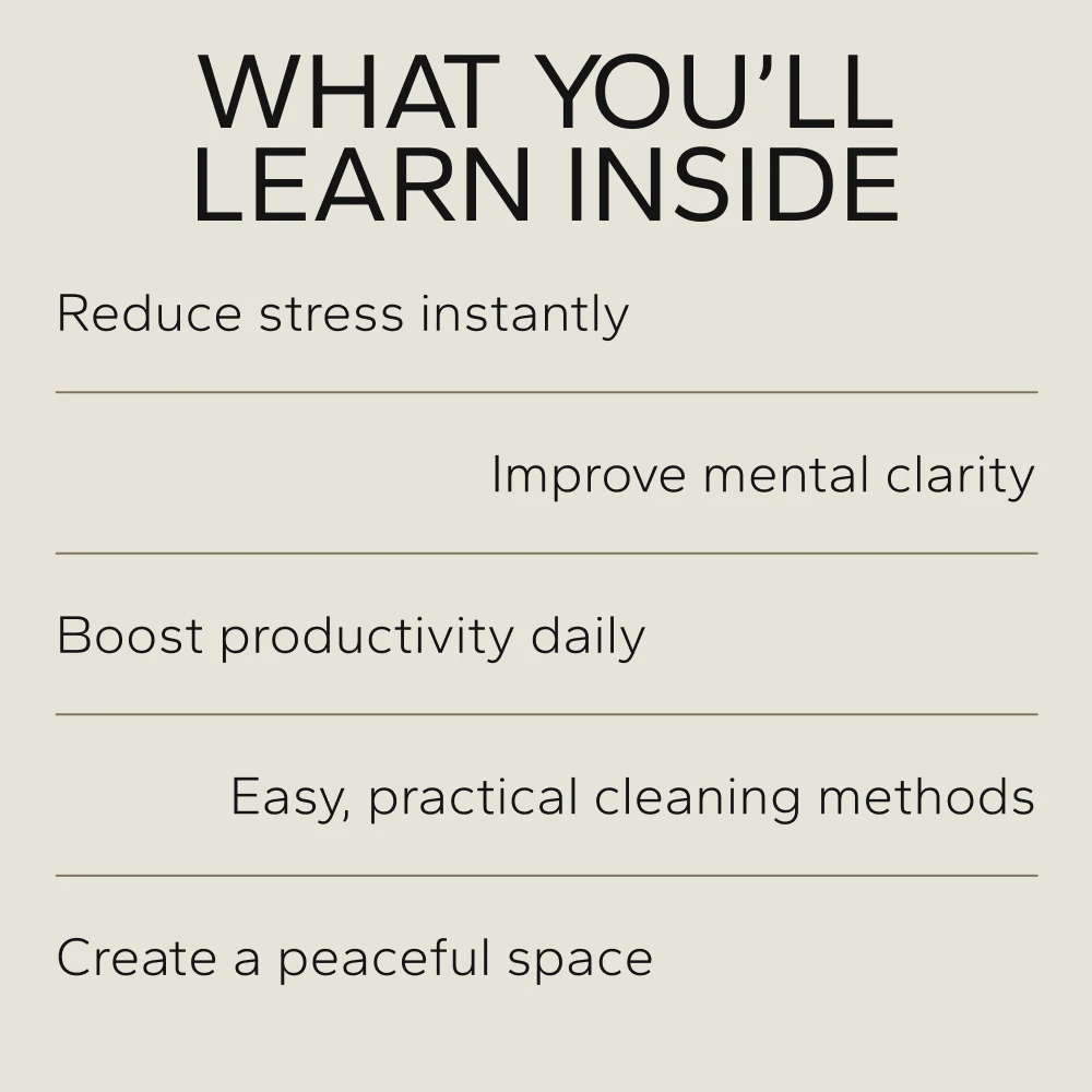 • The Stress-Relief Cleaning Checklist – A step-by-step guide to stress-free cleaning, perfect for those who need clarity and focus while tidying up.